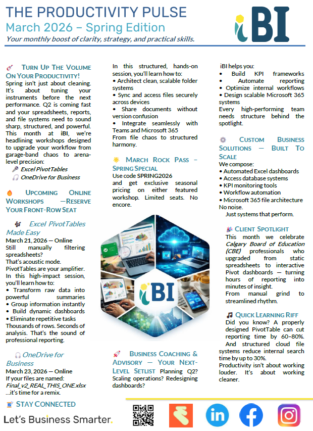 Live, hands-on workshops hosted through Eventbrite and Corporate Lunch & Learns in Microsoft 365, Business and Finance. Public cohorts and private corporate sessions include ready-to-use templates, optional recordings, and Certificates of Completion.